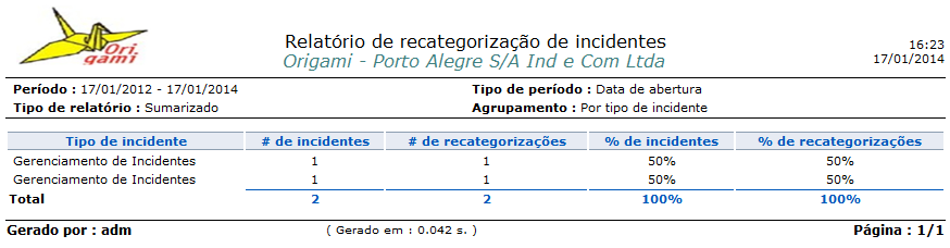 O acesso a este relatório é feito pelo menu “Relatórios e gráficos / Incidentes / Desempenho / Incidentes recategorizados”.