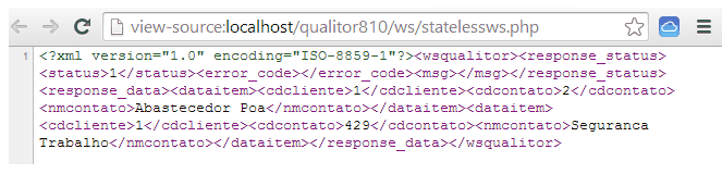 Observando o código HTML acima, podemos entender que a página em questão está realizando um POST ao site onde o Qualitor está instalado no caminho “/ws/statelessws.php”. Realizar este POST contendo os parâmetros “wsdl_file”, “operation”, “user”, “password”, “company”, “input_xml” significa indicar ao Qualitor o seguinte: