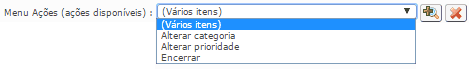 Menu Ações (ações disponíveis): Corresponde ao menu “Ações” da tela de atendimento. Aqui devemos informar quais ações estarão disponíveis para o usuário durante a execução do formulário de atendimento.