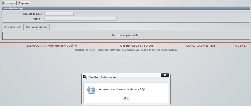 O Qualitor bloquea a execução de operações SQL em Oracle e em SQL Server que realizem alterações nos dados do banco de dados.