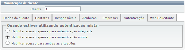 Pela guia “Autenticação” é definido de que forma se dará a autenticação.