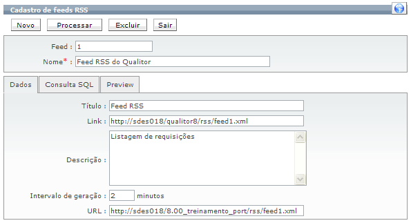 << <%SKIN-STRTRANS-SYNTOC%> >> Navegação: ADMINISTRADOR > Administração > Menu “Avançado” > Ferramentas > Gerenciar feeds RSS > Guia “Consulta SQL” |