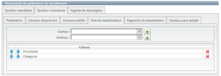 ADMINISTRADOR > Parâmetros relacionados ao atendimento Guia “Qualitor solicitante/Grid de atendimentos” |