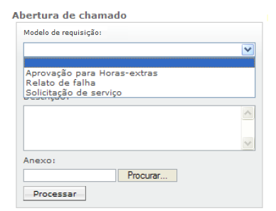 Os modelos de requisições influenciam diretamente no Portal dos Usuários Finais. Caso um único modelo tenha a opção de liberá-lo para a web, a caixa de seleção de modelos não será mostrada, sendo usado este único modelo disponível.