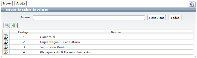Para visualizar o cadastro de uma atividade da cadeia de valor já cadastrada deve-se clicar no ícone