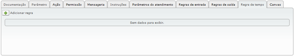 Na guia "Regra de tempo" são definidas regras referente ao tempo de permanência da requisição nesta etapa. Ou seja, quando a requisição atingir um determinado tempo na etapa configurada com a regra de tempo, a requisição poderá ser automaticamente encerrada ou então a requisição é desviada para outra etapa do processo.