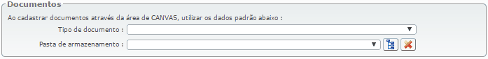 Na segunda área de configurações, também é possível definir, se documentos novos forem cadastrados pela área de CANVAS, como será a atribuição destes documentos quanto ao TIPO DE DOCUMENTO e quanto à PASTA DE ARMAZENAMENTO dos mesmos: