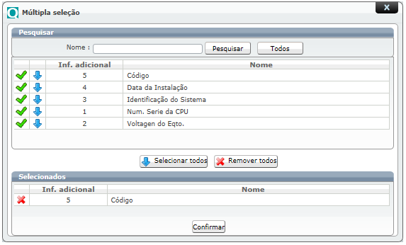 A seguinte tela será apresentada para que se proceda a escolha da informação adicional: