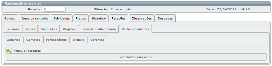 Através da subguia "Gerentes" é possível vincular os gerentes que estarão envolvidos com o projeto.