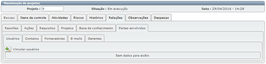 Através da subguia "Usuários" é possível vincular os usuários que estarão envolvidos com o projeto.