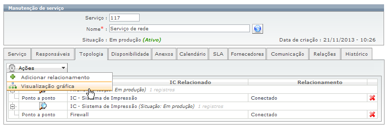 Já a topologia de IC’s é exibida dentro do cadastro de serviços de tecnologia.
