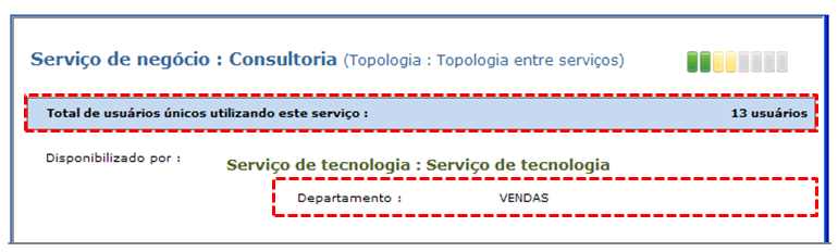 Outra informação que será exibida pelo resultado da análise de disponibilidade é a quantidade de serviços de tecnologia que estão relacionados a determinado serviço de negócio: