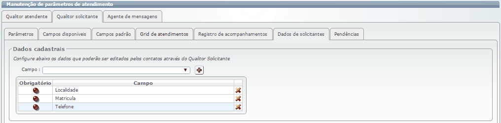 Nesta tela, também é possível configurar quais campos são de preenchimento obrigatório ou opcional.