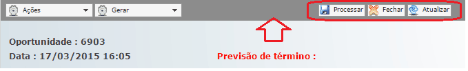 Na imagem acima podemos observar a cor de fundo da barra superior, que compreende o menu de “Ações“ e o menu “Gerar” do atendimento. Também contempla os botões que foram selecionados.