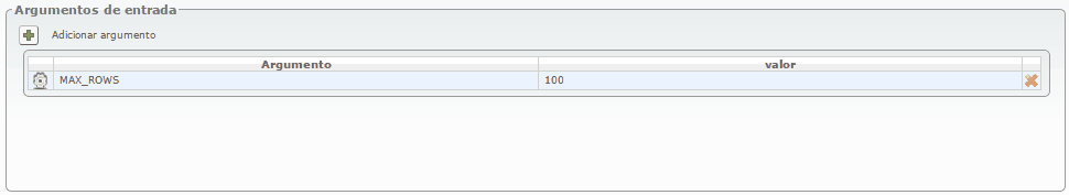 Ao clicar para “Adicionar argumento” na lista de parâmetros, temos: