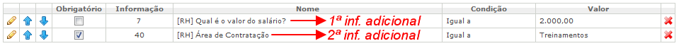 A informação adicional selecionada, quando o processo alcançar esta etapa, servirá para realizar uma comparação com o conteúdo da informação adicional de mesmo nome, já presente e preenchido na requisição anteriormente.