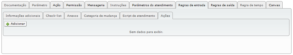 As ações que poderão ser adicionadas são aquelas que foram criadas na guia “Ações”, que neste caso serão utilizadas como “Regras de entrada”.