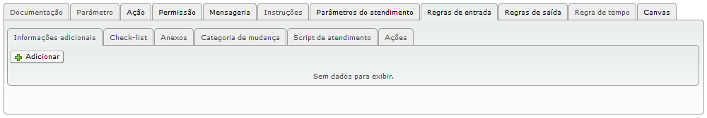 Obs.: Toda a informação adicional setada como regra de entrada, somente faz sentido se anteriormente já tiver sido solicitada e preenchida em algum outro momento da requisição, seja através de uma regra de saída, solicitada na configuração da categoria da requisição, ou ainda solicitada pelo tipo de requisição.