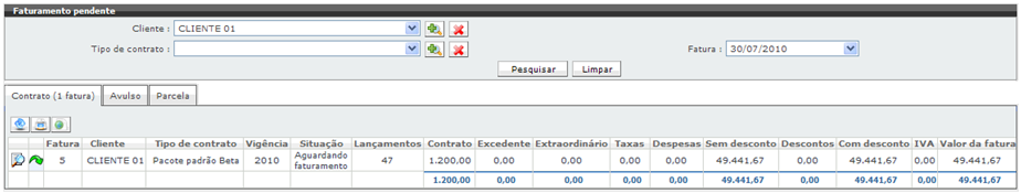 No Faturamento pendente, o novo valor para o contrato já passa a ser exibido:
