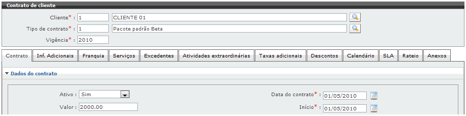 Diante desse valor, o cliente resolve então reformular seu contrato. Ele resolve aumentar a franquia e o valor do contrato, passando para o valor de R$ 2000, dando direito a 20 horas (= franquia), conforme demonstram as imagens a seguir: