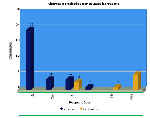 •Texto valores 1: Nesse campo, informa-se o texto referente aos valores (nome dos valores) que aparecerão no gráfico. No gráfico apresentado a seguir, o nome dos valores é “Chamados”.
