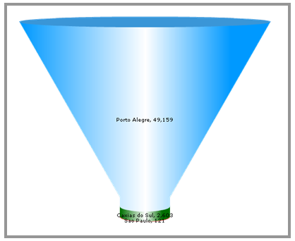 O gráfico funil apresenta, em camadas, os indicadores e nomes de série.