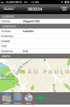 A opção “Mapa” permite visualizar a localização do cliente/contato através do mapa.
