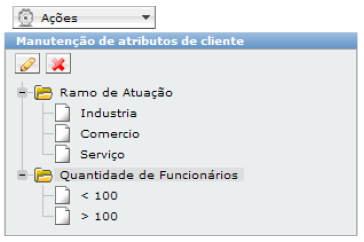 Nesta opção definem-se os valores possíveis para serem selecionados como atributos de clientes. Esta opção é acessada através do menu “Administração / Clientes / Atributos de clientes”.