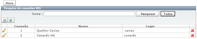 Ao clicar nesta opção, uma listagem de conexões será apresentada.
