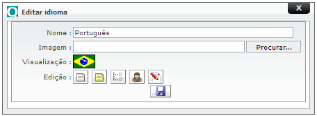IMPORTANTE: por padrão do Sistema, os idiomas Inglês e Espanhol são representados pelas seguintes bandeiras: