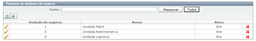 Unidades de negócio é um cadastro simples com nomes de unidades de negócio, que de acordo com a estrutura de cada cliente pode ser considerada hierarquicamente acima de departamentos.
