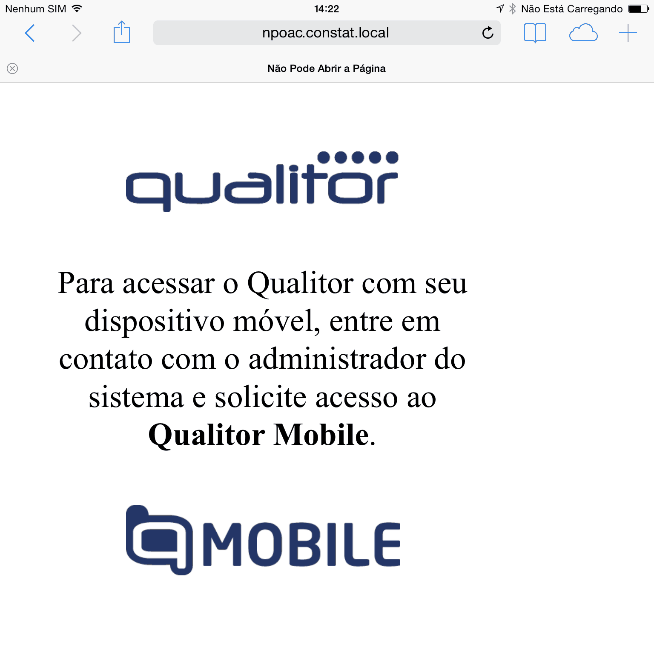 Nestas situações, o próprio Qualitor irá identificar este tipo de acesso, e exibir uma mensagem ao usuário informando que não é possível realizar o acesso ao produto através de um dispositivo móvel, conforme abaixo: