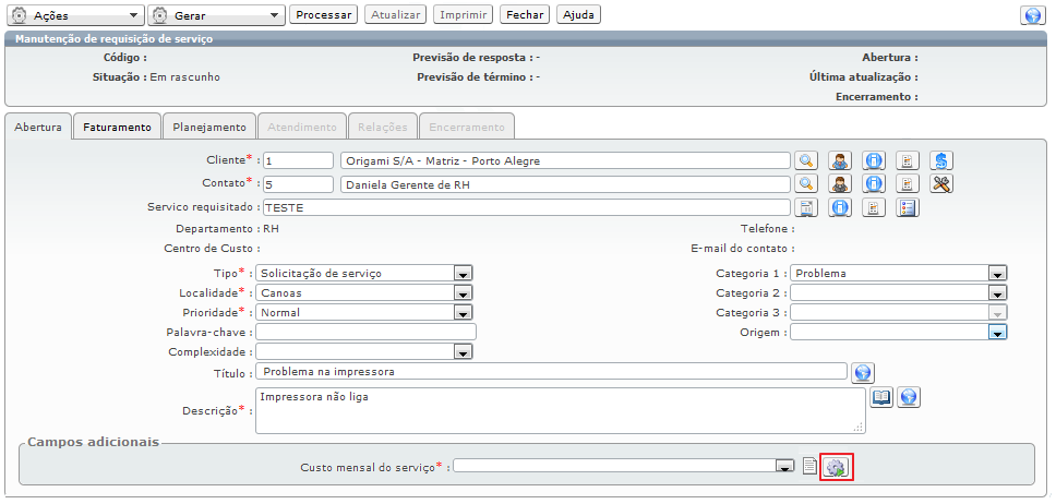 Veja abaixo como ele aparecerá na tela de requisição de serviço: