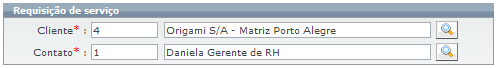 Esta opção de menu abre uma nova janela onde atendentes podem criar novas requisições de serviço. Primeiramente, o cliente e o contato são identificados:
