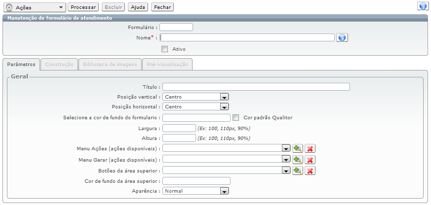 Ativo: O parâmetro "Ativo" deve ser marcado para que o formulário possa ser utilizado.
