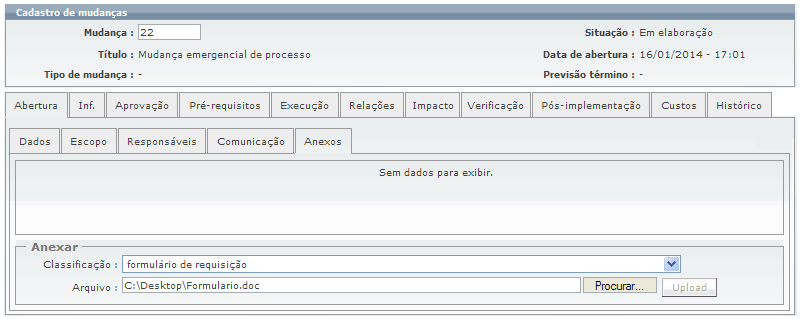 Possibilita anexar arquivos às mudanças, conforme o padrão de anexos do Qualitor.
