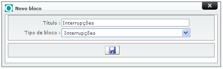 Para isso, o “Tipo de Bloco” a ser escolhido deve ser “Interrupções”.