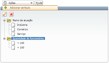 Nesta opção definem-se os valores possíveis para serem selecionados como atributos de clientes. Esta opção é acessada através do menu “Administração / Clientes / Atributos de clientes”.