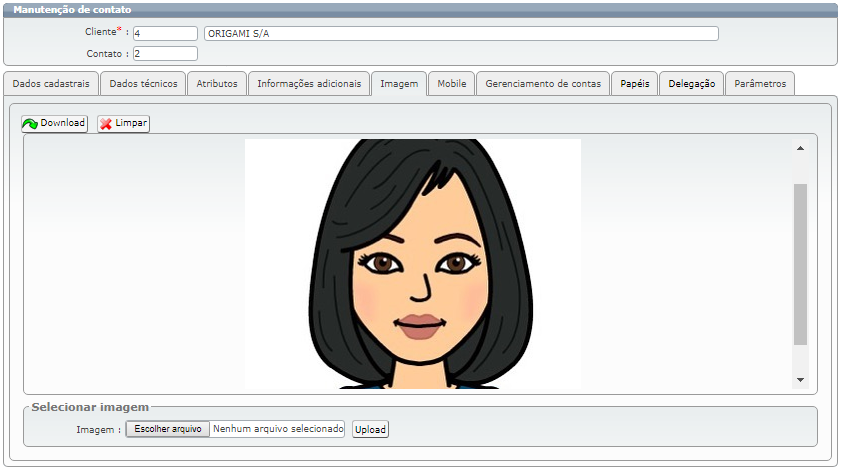 Na guia “Imagem”, é possível anexar uma imagem relacionada ao contato.