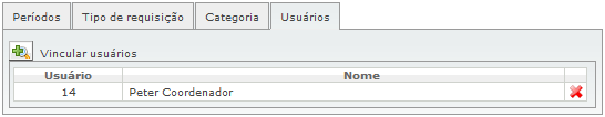 Nesta guia define-se quais usuários serão avisados quando um determinado Tipo de Requisição, vinculado especificadamente a produto, alcançar a quantidade previamente definida para a condição de alerta, gerando com isso, e-mail a usuários, definidos na guia “Usuários”.