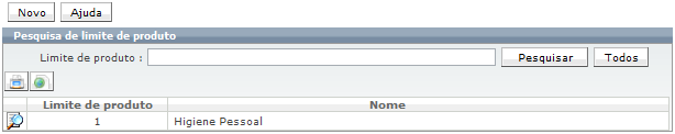 Para visualizar um limite de produtos já cadastrado, basta clicar no ícone de lupa. E para cadastrar um novo limite, deve-se clicar no botão “Novo”.