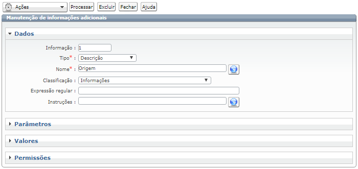 Nos próximos tópicos será explicado dois recursos que auxiliam no cadastro e manutenção das informações adicionais: