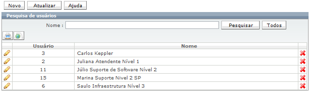 Para cadastrar um usuário, clica-se no botão “Novo” e a seguinte tela será exibida: