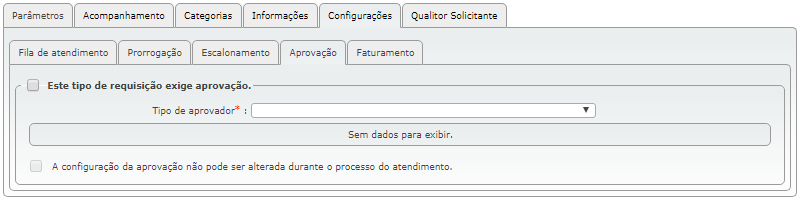 Nesta subguia, é preciso habilitar o parâmetro "Este tipo de requisição exige aprovação" para que as configurações fiquem disponíveis: