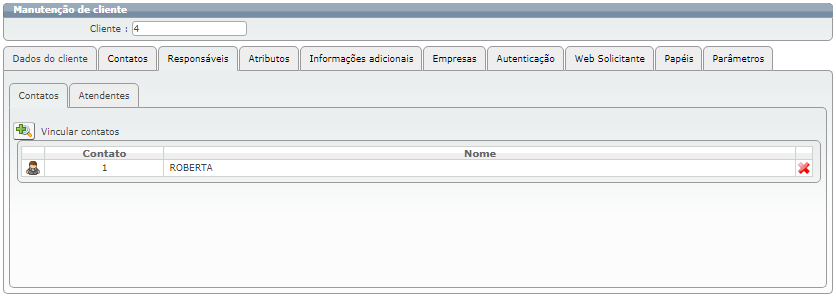Nesta subguia são vinculados os contatos responsáveis pelo cliente.