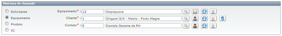<< <%SKIN-STRTRANS-SYNTOC%> >> Navegação: ATENDENTE > Chamados > Chamados: Recursos para criação e manutenção > Recursos de "Chamados" > Menu "Abrir Chamado Tela Única" > Abertura por Equipamento |