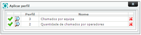 Cada vez que o atendente necessitar realizar a pesquisa não será necessário preencher novamente todos os campos de filtros para obter a visualização desejada, e sim poderá selecionar “Aplicar Perfil”.