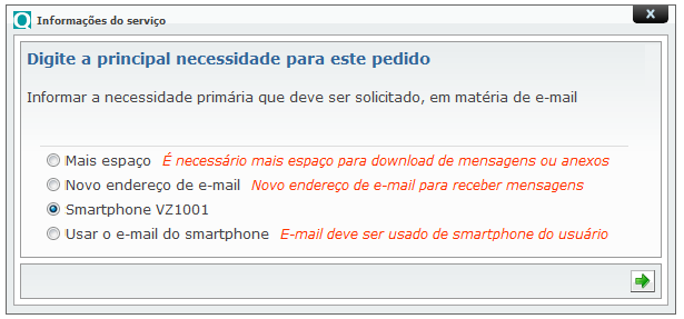 Ao escolher um dos serviços disponíveis (no catálogo de serviços), uma janela referente ao “grupo de itens” pode ser exibida. Esta função é como um carrinho de compras, onde itens são selecionados e adicionados à requisição. Quando a seleção for feita, a requisição pode ser enviada.