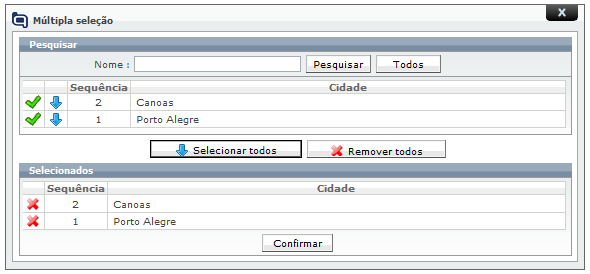 Este recurso é útil nos casos em que há muitos valores cadastrados como opção. Com a pesquisa de valores, basta procurar a opção desejada por “Nome”, ou visualizar “Todos”.