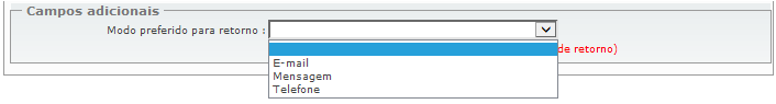 Ex. 1: Abaixo a imagem demonstra a escolha para preenchimento dos “campos adicionais” a partir de uma lista de valores previamente definidos.